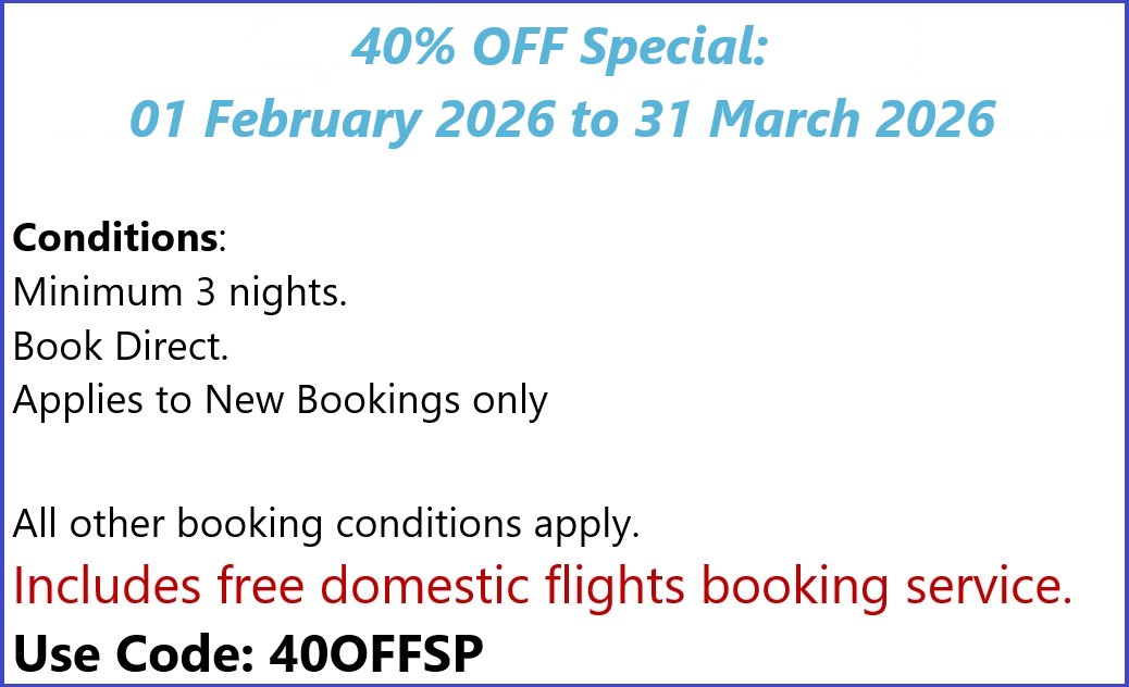 - Complimentary Room Upgrade - subject to date of bookings: first booked; first served.